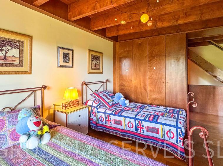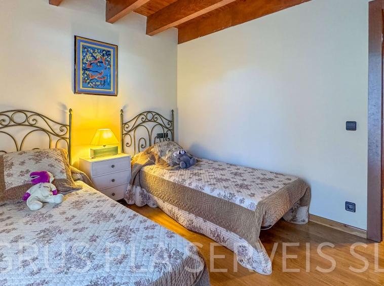 habitacions dobles, una d’elles de matrimoni amb sortida a balcó més un bany. A les golfes i ha un espai diàfan. Producció d’aigua