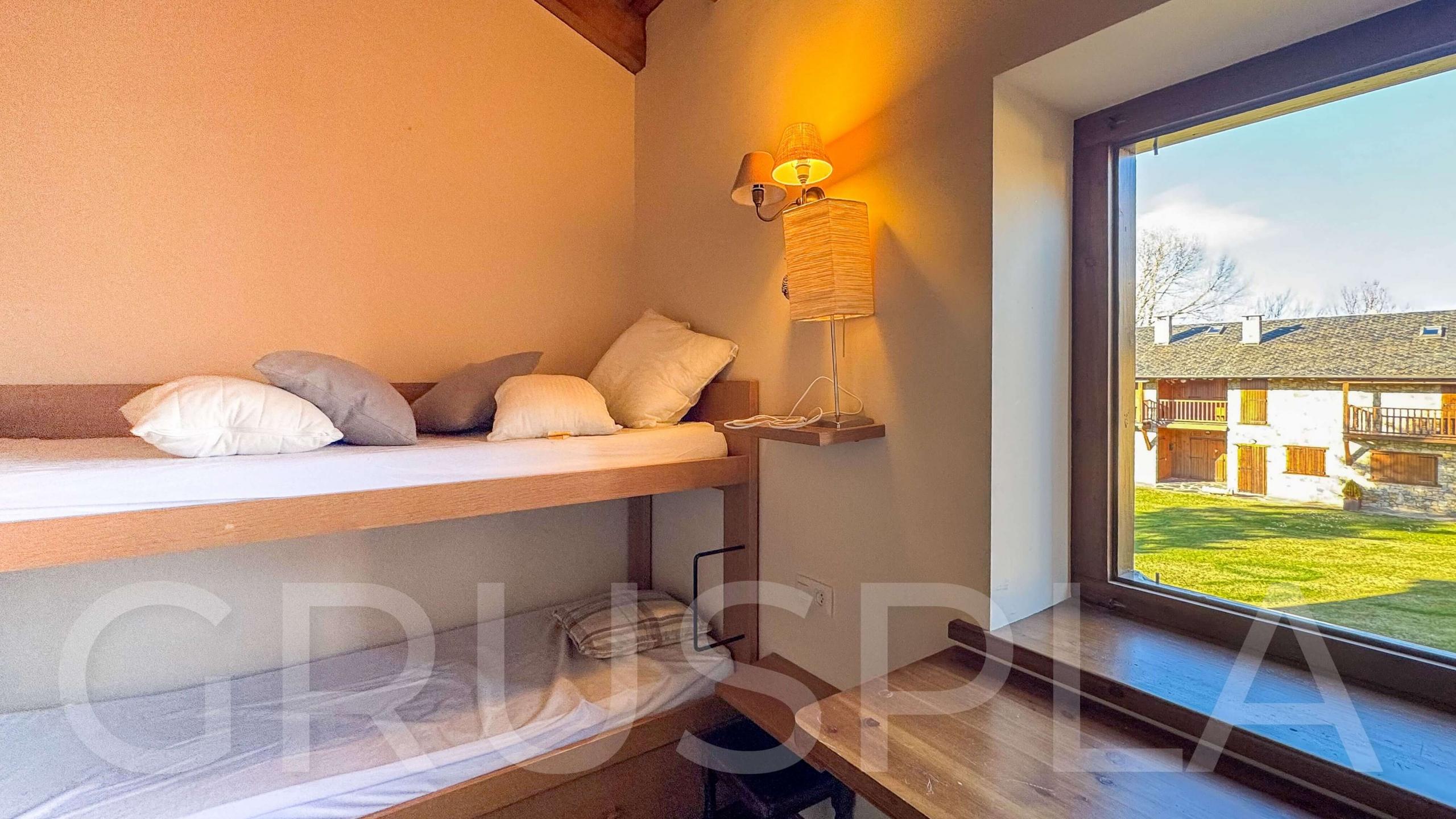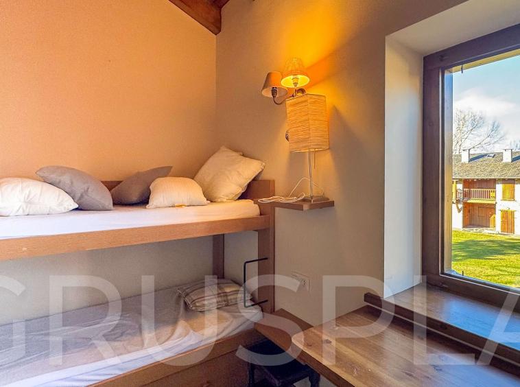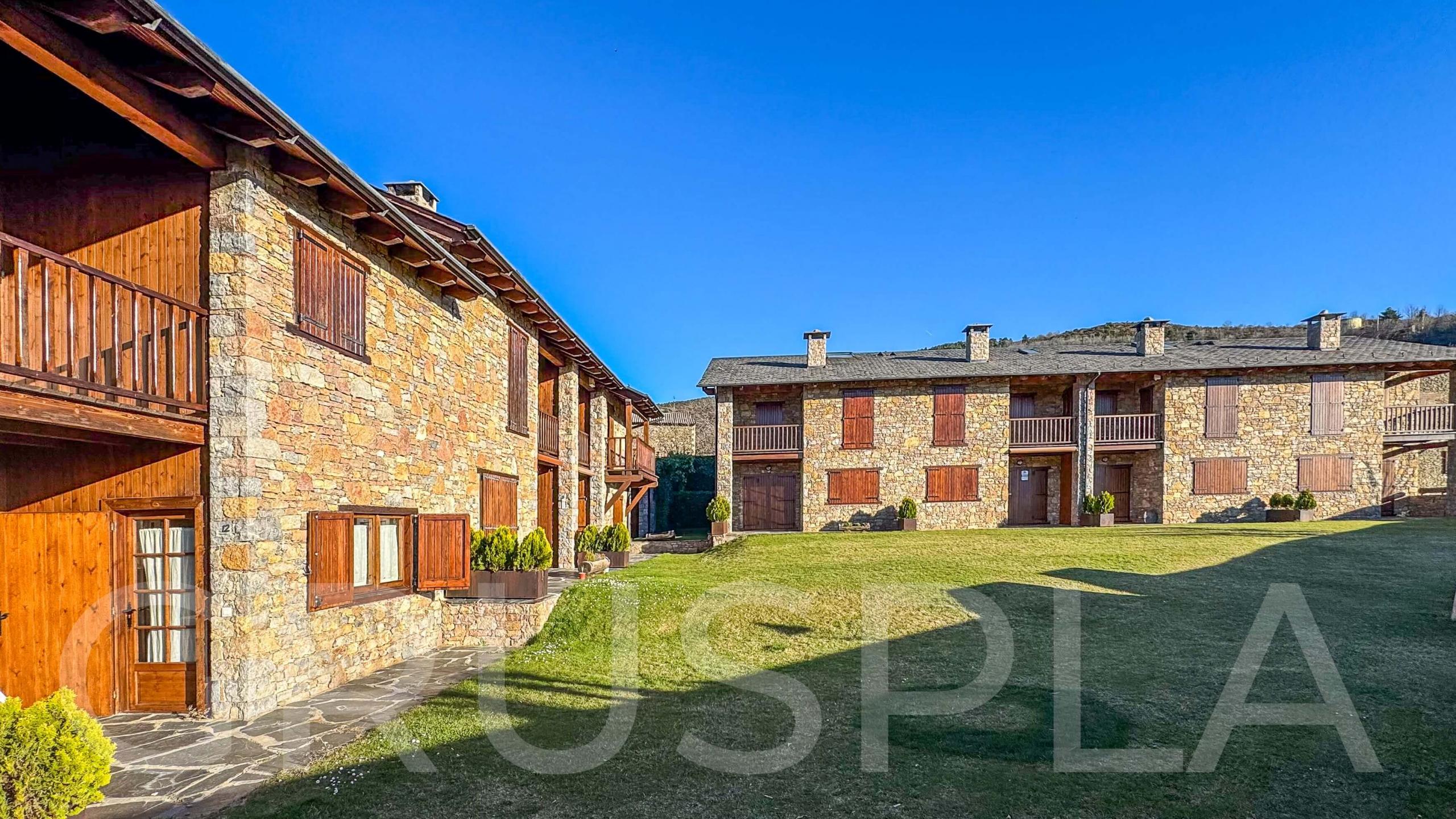 Entorn: Ubicada en una urbanització de pedra amb àmplies zones comunitàries enjardinades i vistes immillorables a la vall i als pics nevats.