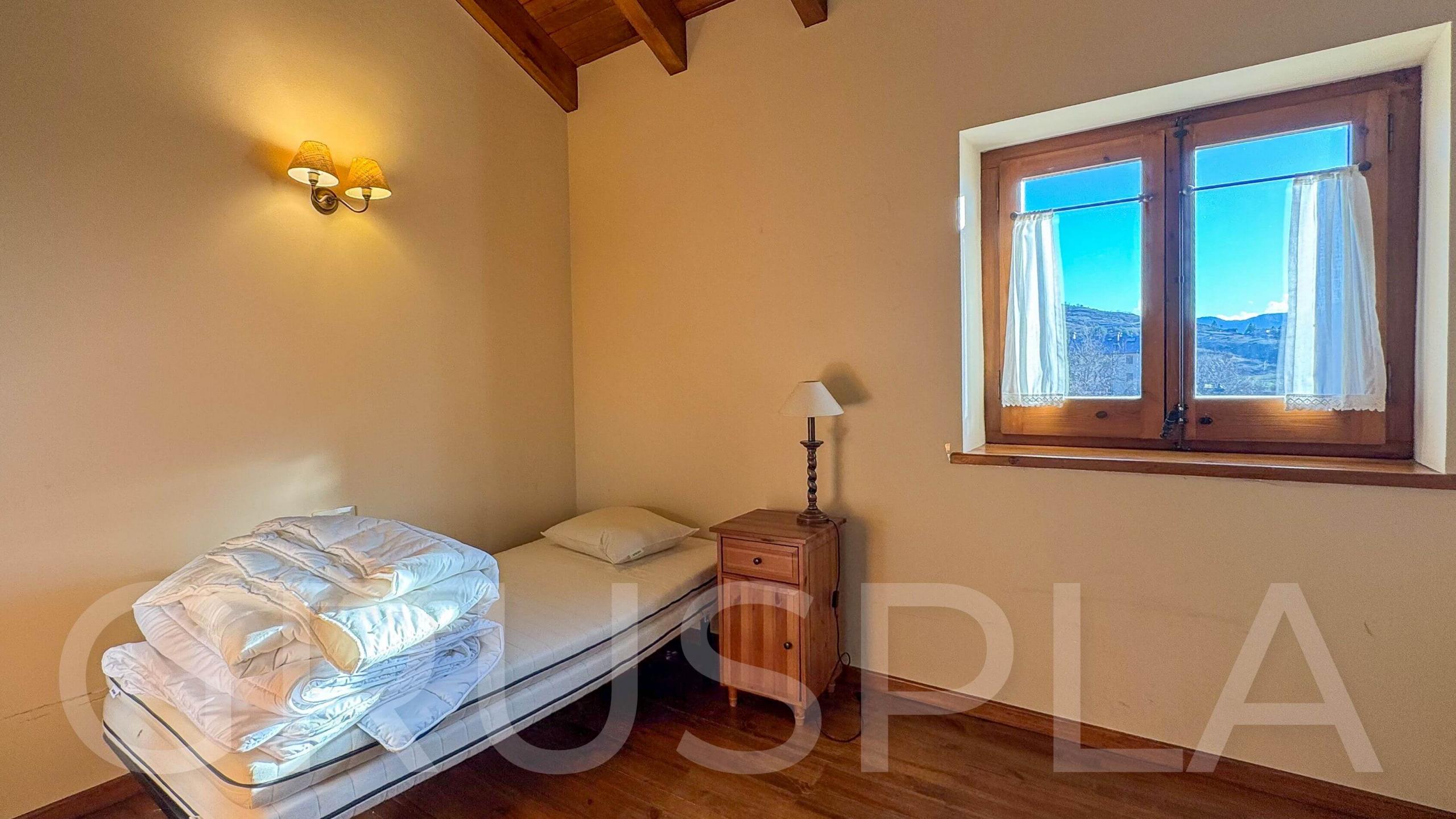 Es lloga encantadora casa de muntanya d’estil tradicional, caracteritzada pels seus sostres de fusta i un ambient càlid i familiar. La propietat destaca per la seva gran lluminositat gràcies a la seva orientació oest, ideal per gaudir de postes de sol espectaculars des de la seva balconada coberta.