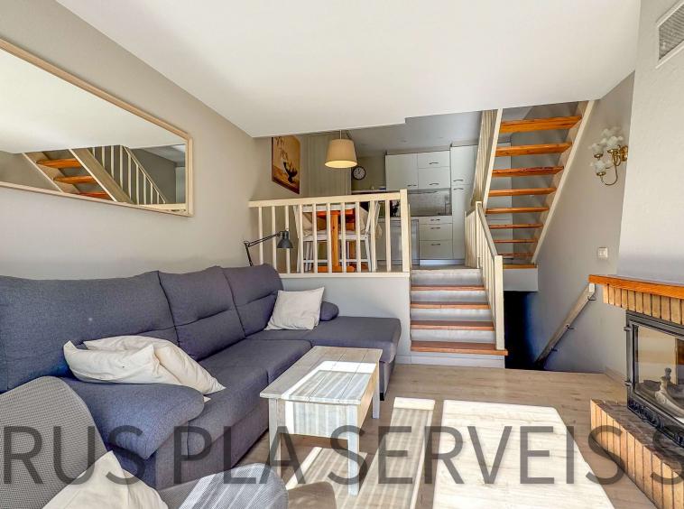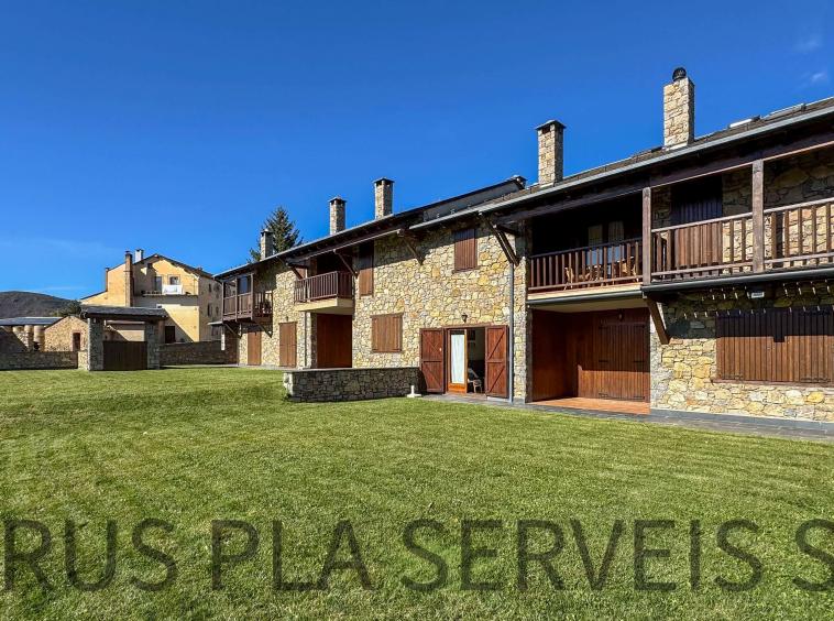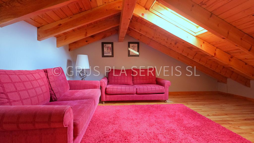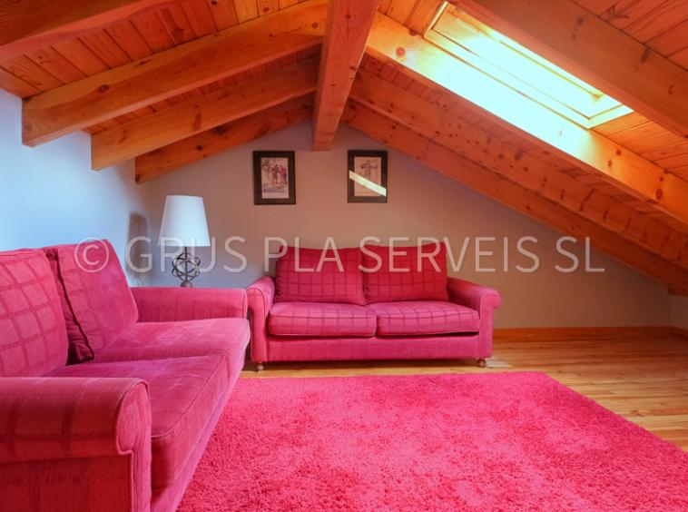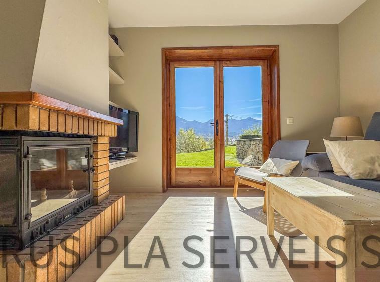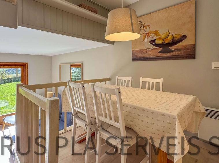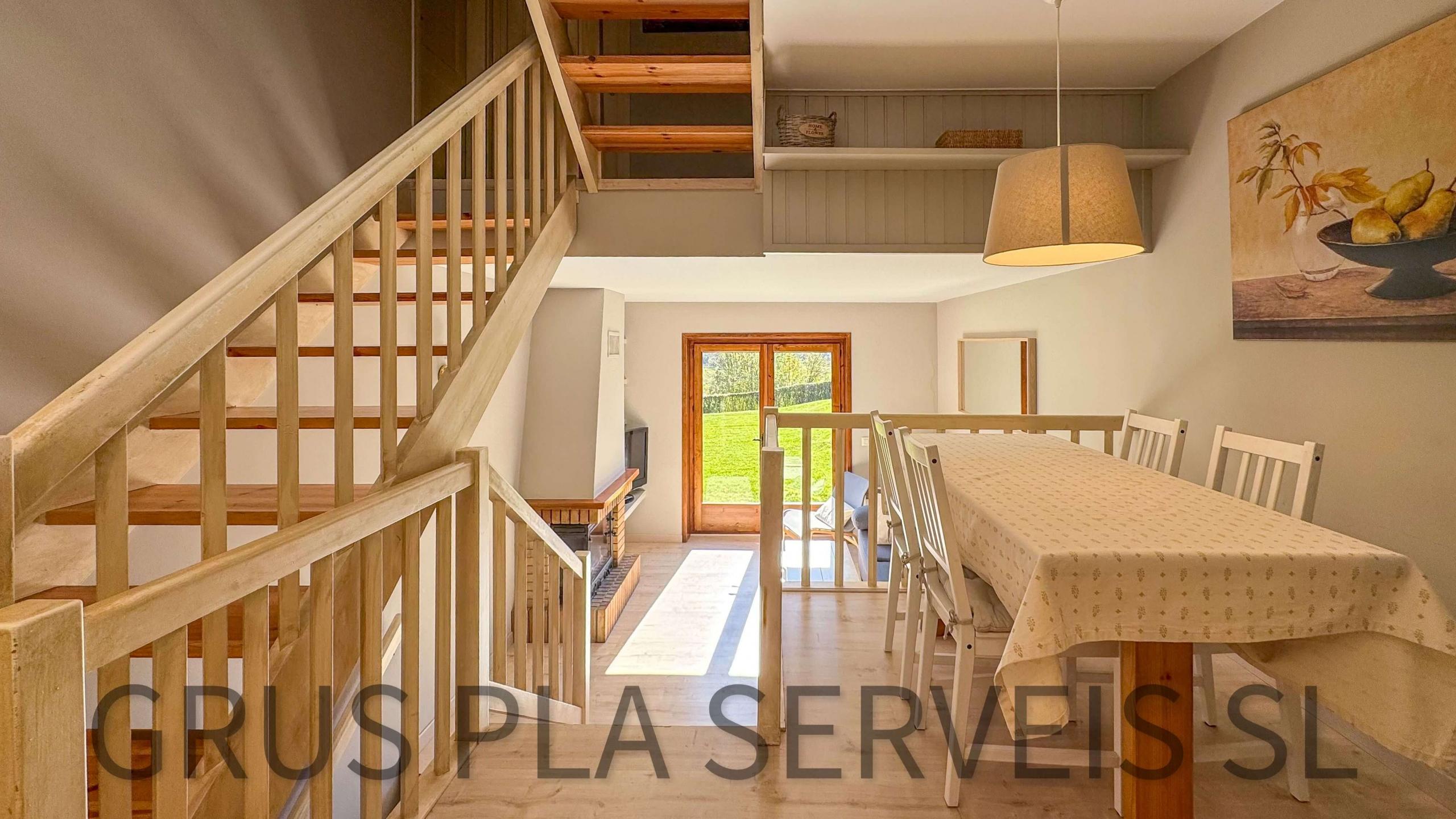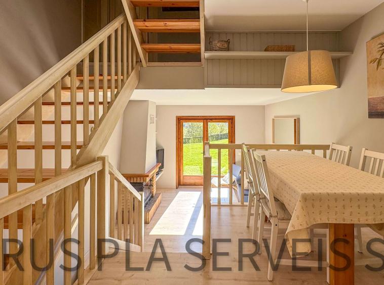 Lloguer de casa adossada per a segona residència per temporada de tot l’any a All. Disposa en planta baixa de sala-menjador amb llar de foc i sortida a terrassa més jardí.