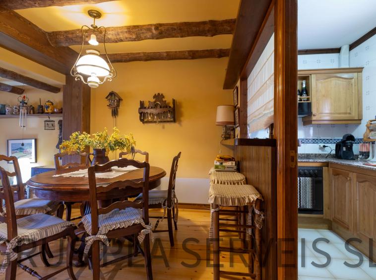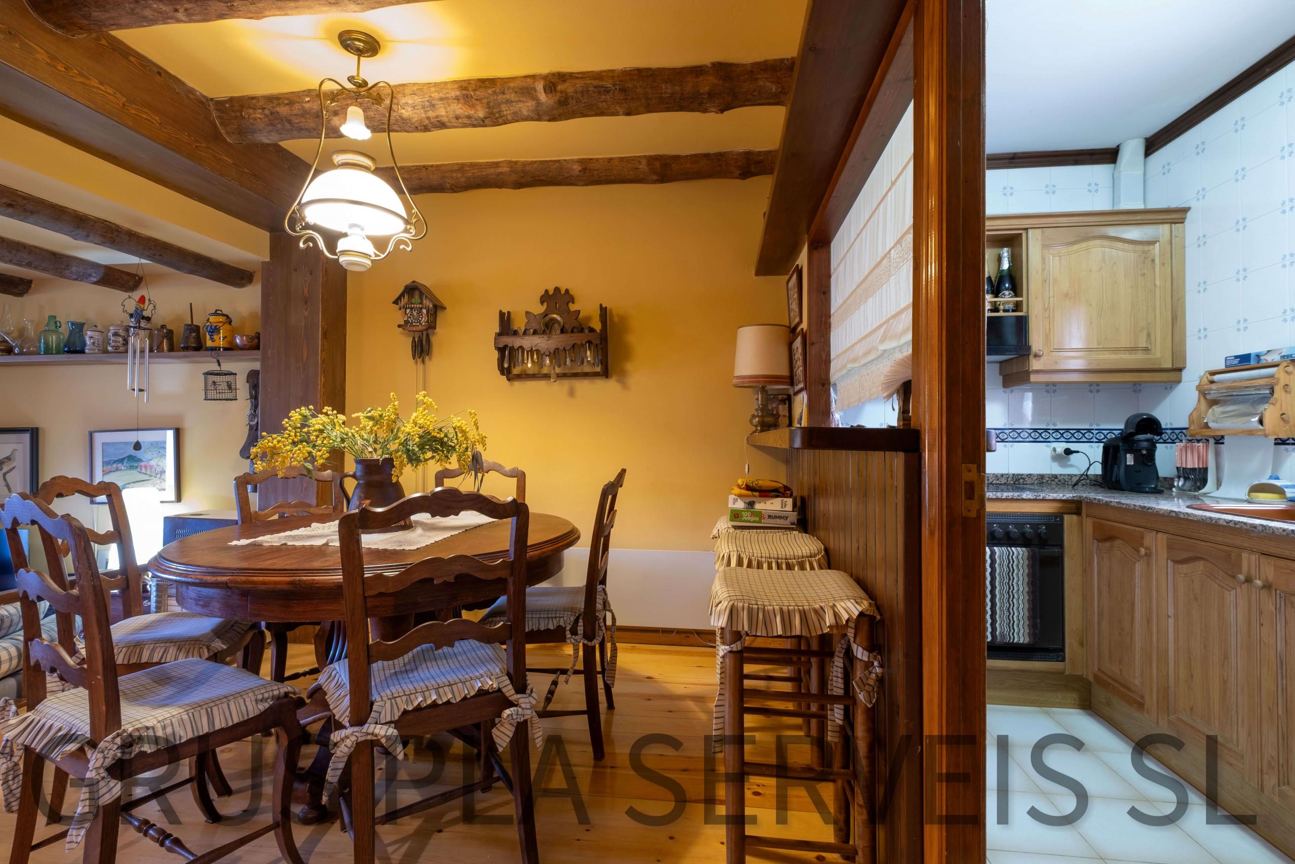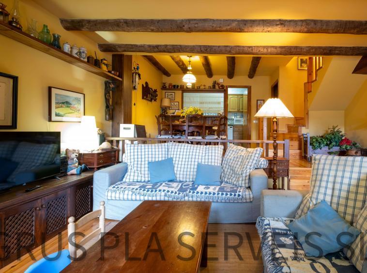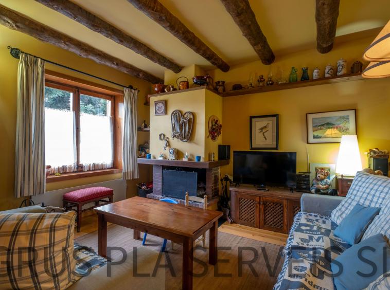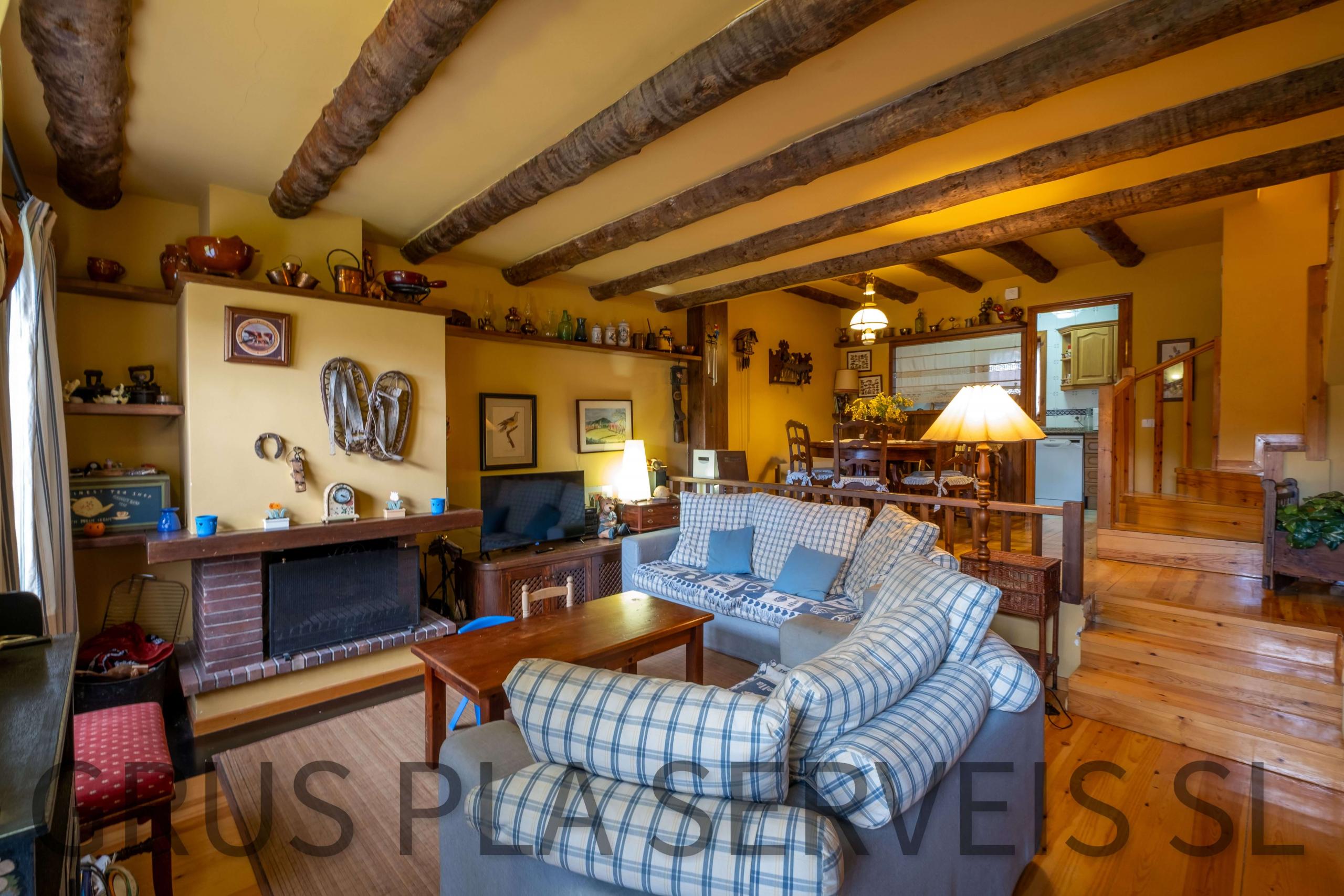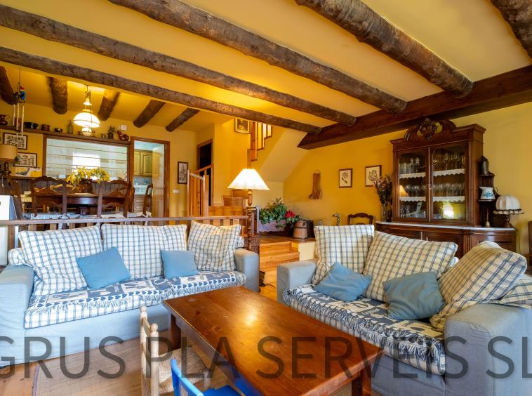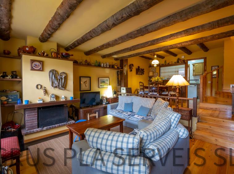 Planta baixa: rebedor, cuina-menjador totalment equipada i ampli saló amb llar de foc i sortida directa a la terrassa i jardí privat, ideals per gaudir de les vistes i de moments a l’aire lliure.