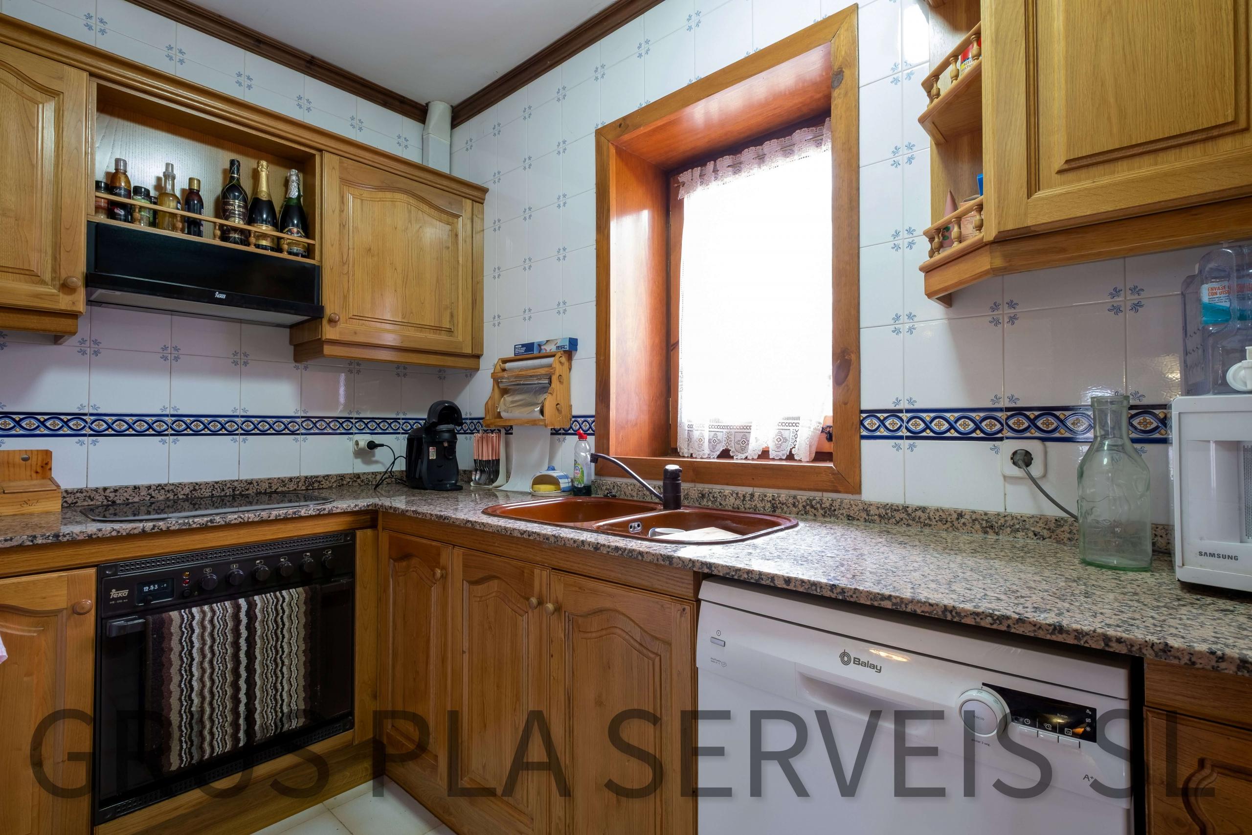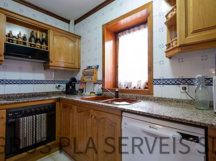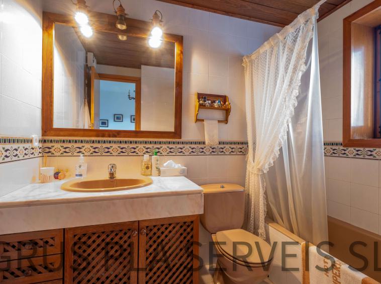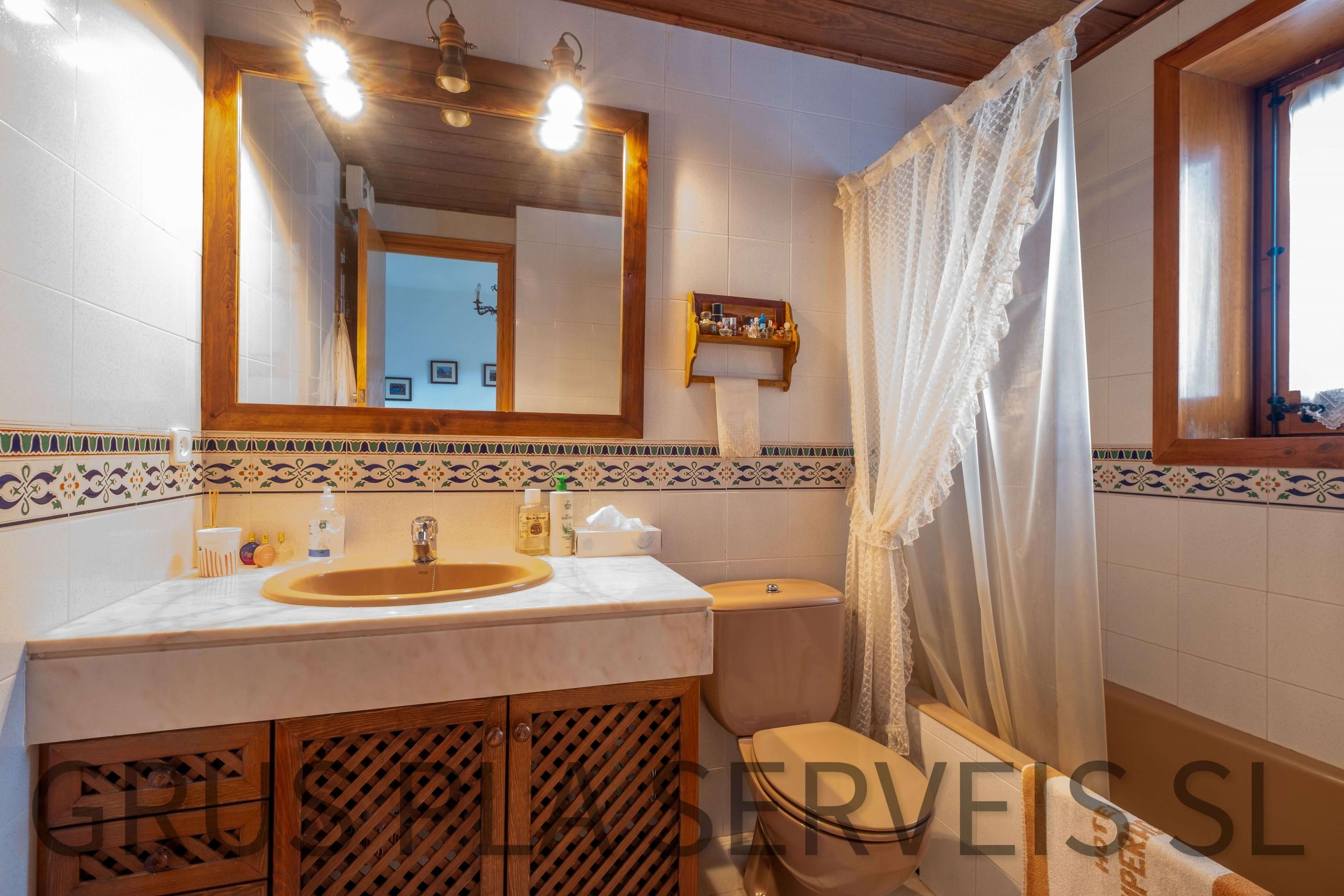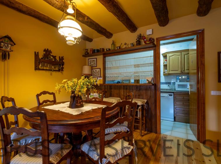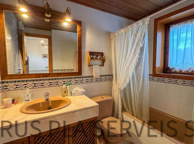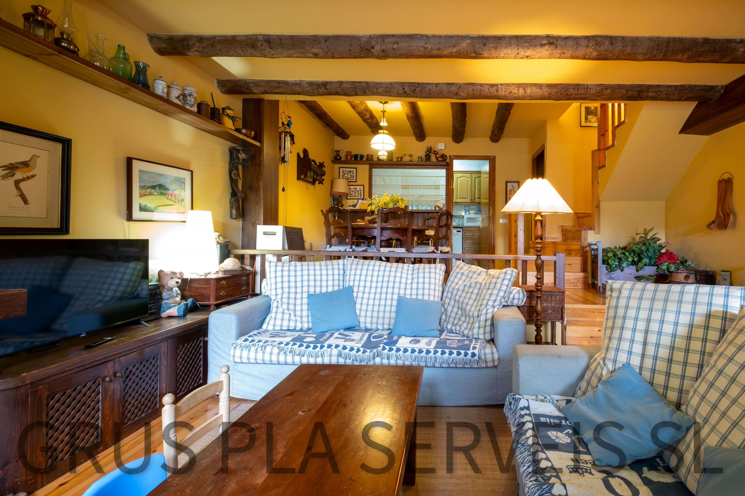 Planta baixa: rebedor, cuina-menjador totalment equipada i ampli saló amb llar de foc i sortida directa a la terrassa i jardí privat, ideals per gaudir de les vistes i de moments a l’aire lliure.
