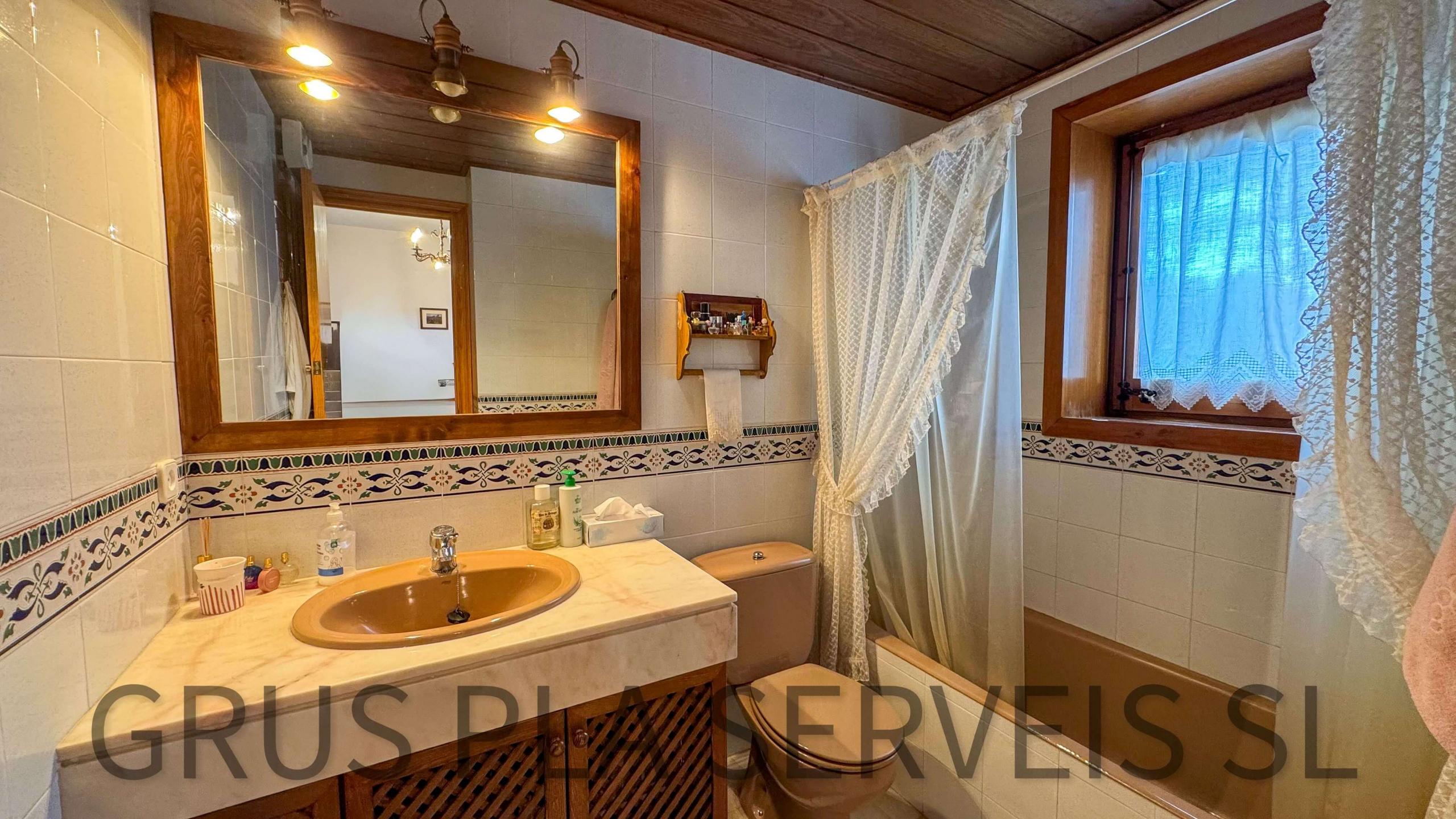 Primera planta: bany complet amb dutxa, habitació tipus suite amb bany privat amb banyera, i dues habitacions individuals.