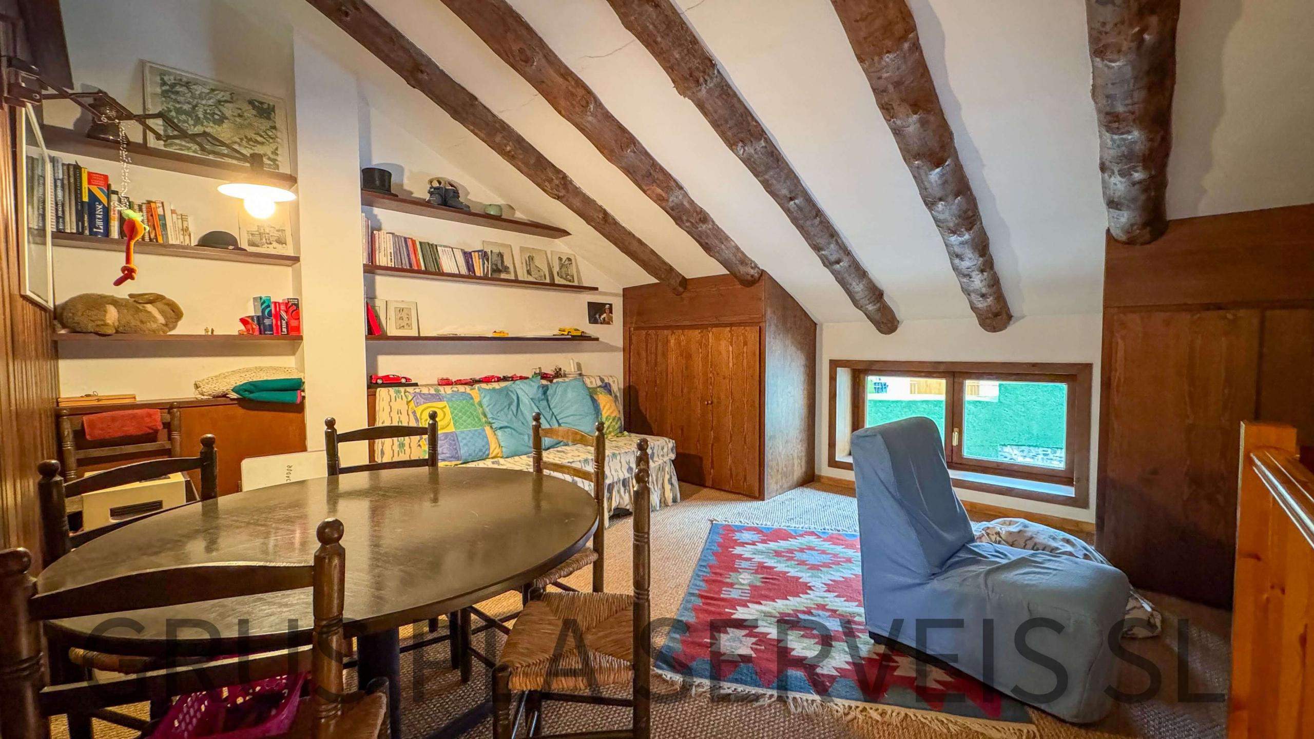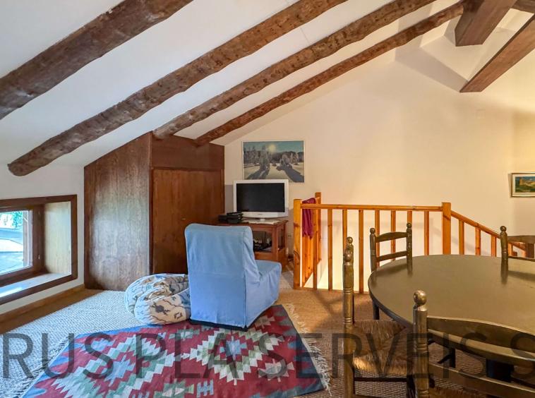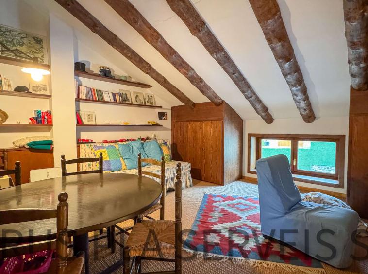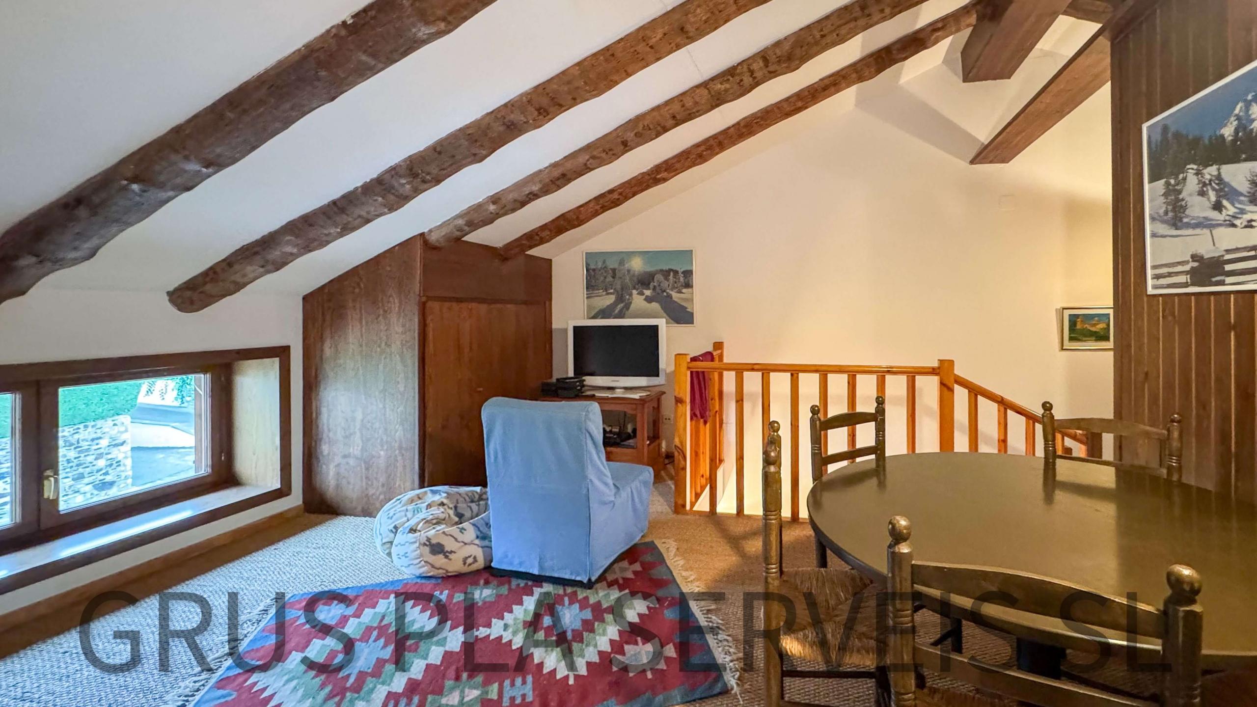 Planta sota coberta: una habitació doble addicional i una sala polivalent perfecta com a zona d’estar, joc o despatx més un bany amb zona de màquines.